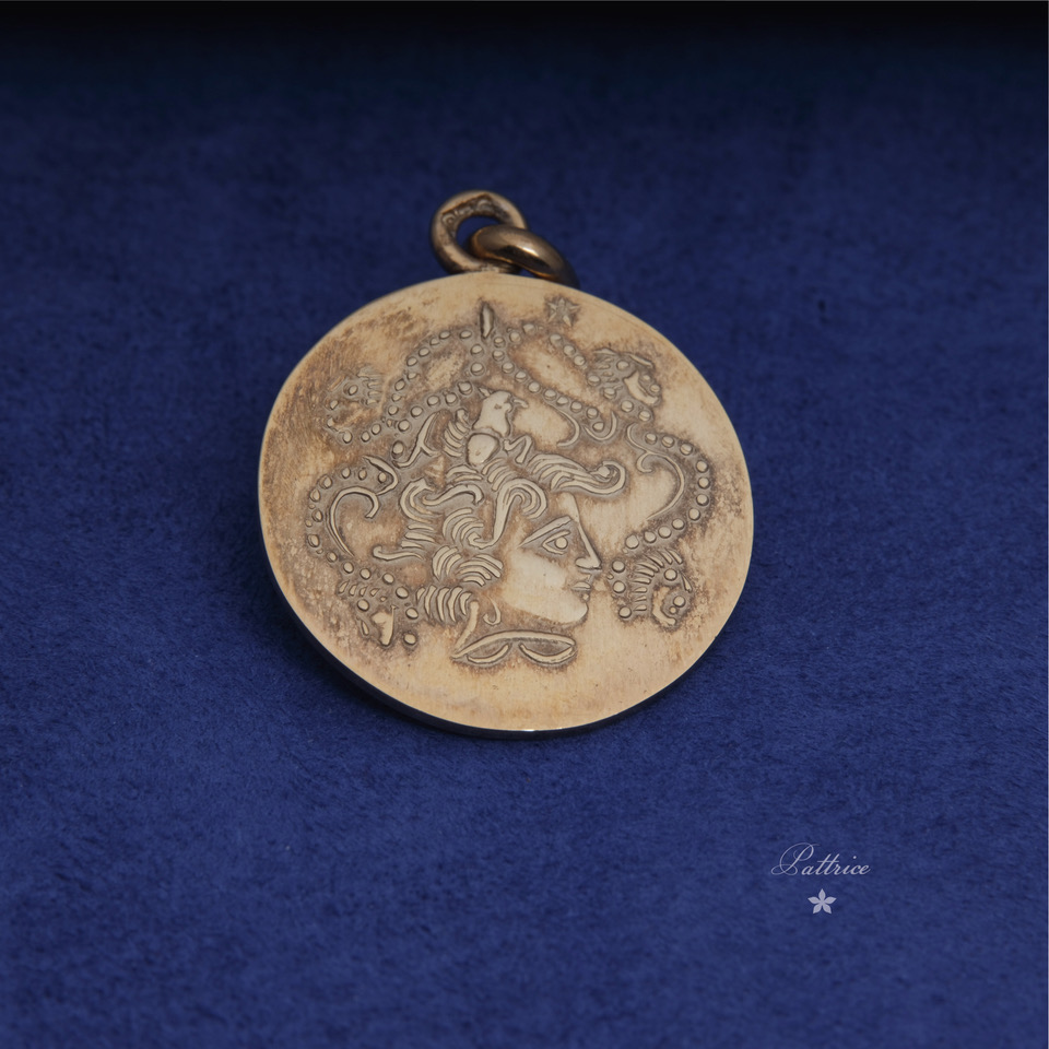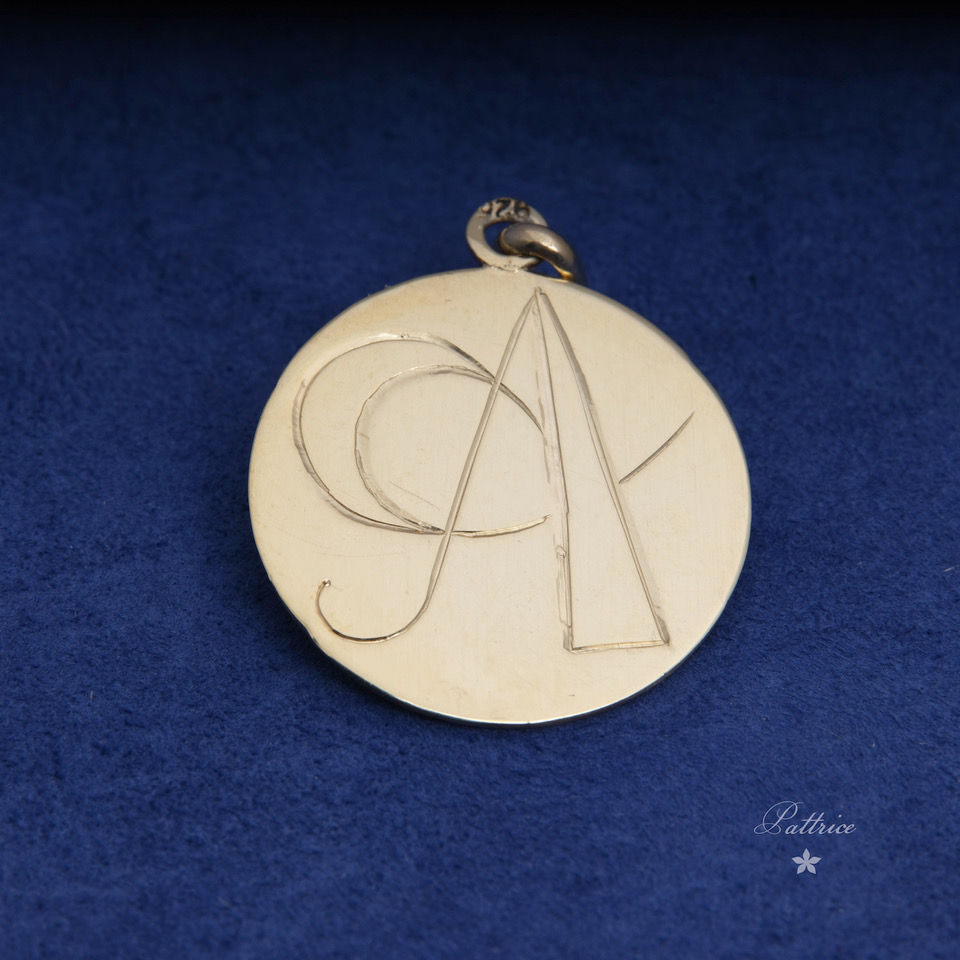Le Rhodium est un métal très rare, beaucoup plus cher que l’or et très dur. Il permet sur mes médailles en argent d’éviter l’oxydation de celles -ci et leurs donne un aspect encore plus blanc que l’argent.