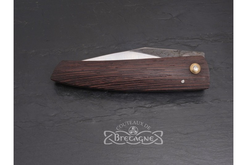 Le bois de Wengé, originaire des forêts tropicales d'Afrique, incarne une élégance et une sophistication incomparables pour les manches de mes couteaux. Sa teinte sombre et profonde, variant du brun chocolat au noir intense, est ponctuée de fines stries naturelles qui ajoutent une dimension visuelle captivante et une texture unique. Chaque morceau de Wengé est soigneusement sélectionné pour sa densité et sa robustesse, garantissant une durabilité exceptionnelle et une résistance aux épreuves du temps.